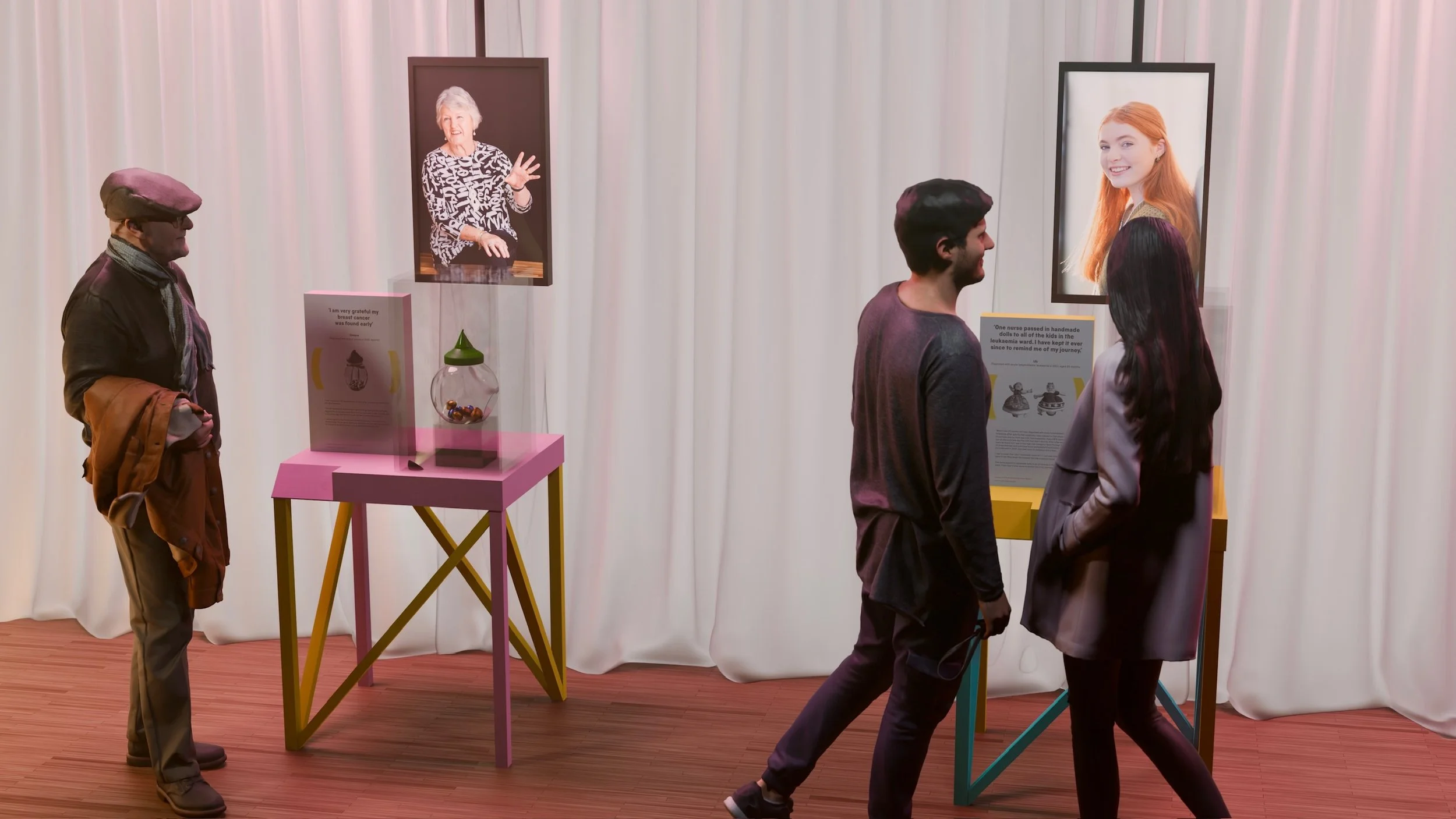 I contributed to the Breakthrough Cancer Research project by supporting print production and delivering a series of detailed 3D renders used to visualise key exhibit pieces. While not the project lead, I played a significant role in shaping the visual presentation and ensuring design consistency across materials, helping bring the exhibition’s concepts to life with clarity and impact.